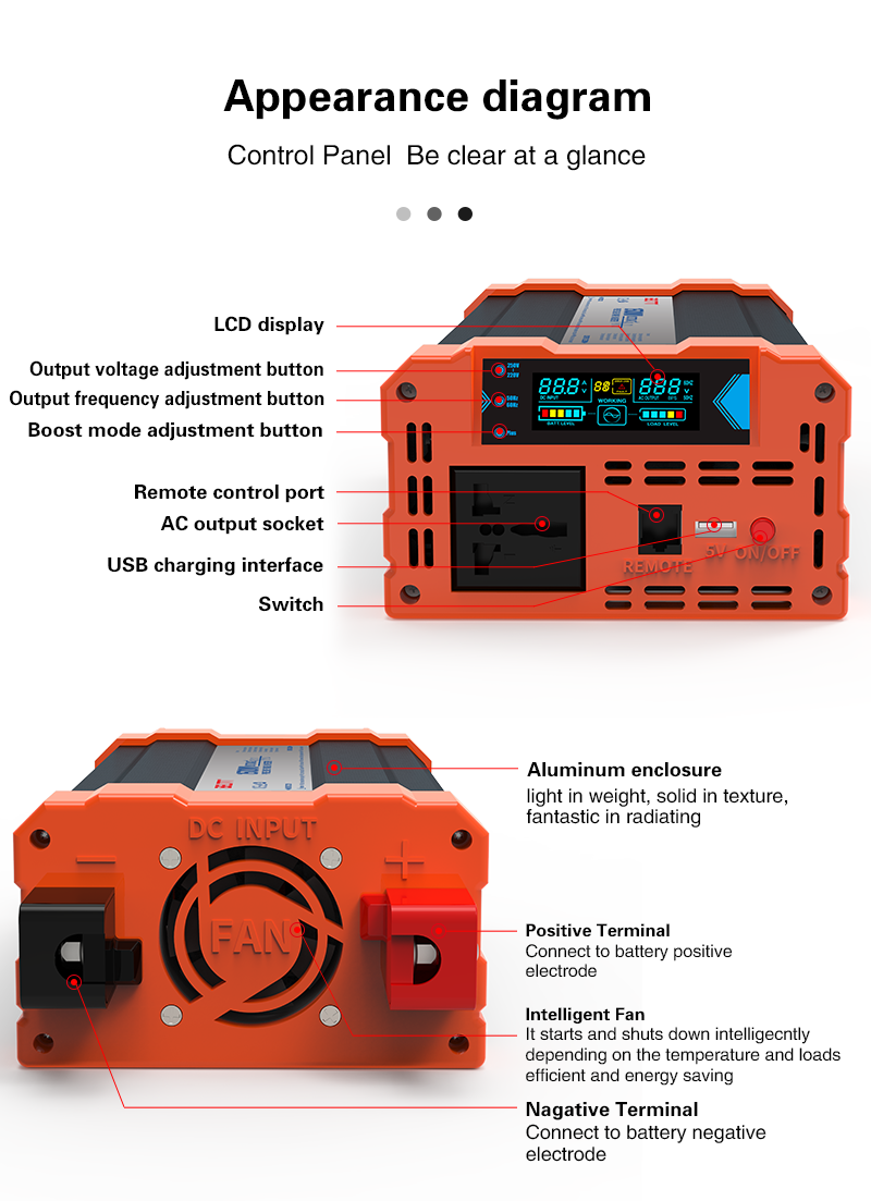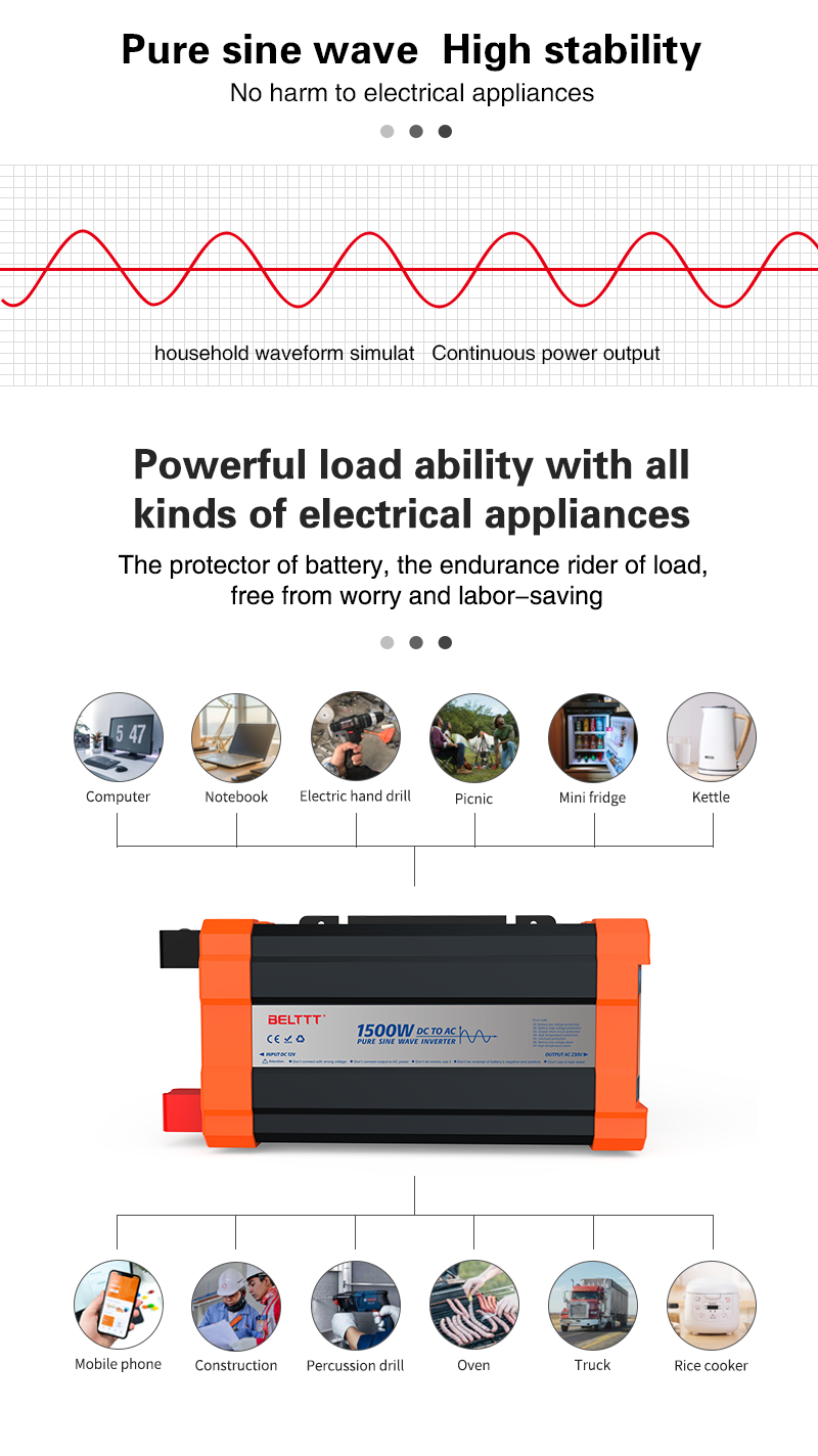 3000W pure sine wave inverter BAP3000 The product has the following characteristics: