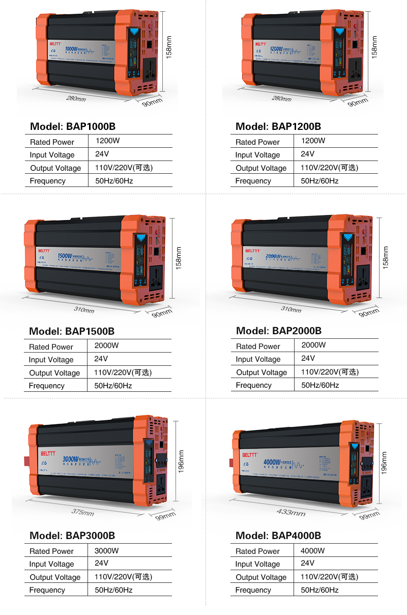 4. Output voltage and frequency can be set by users to meet different requests (BBP1000 and BBP1500 are not with this function);